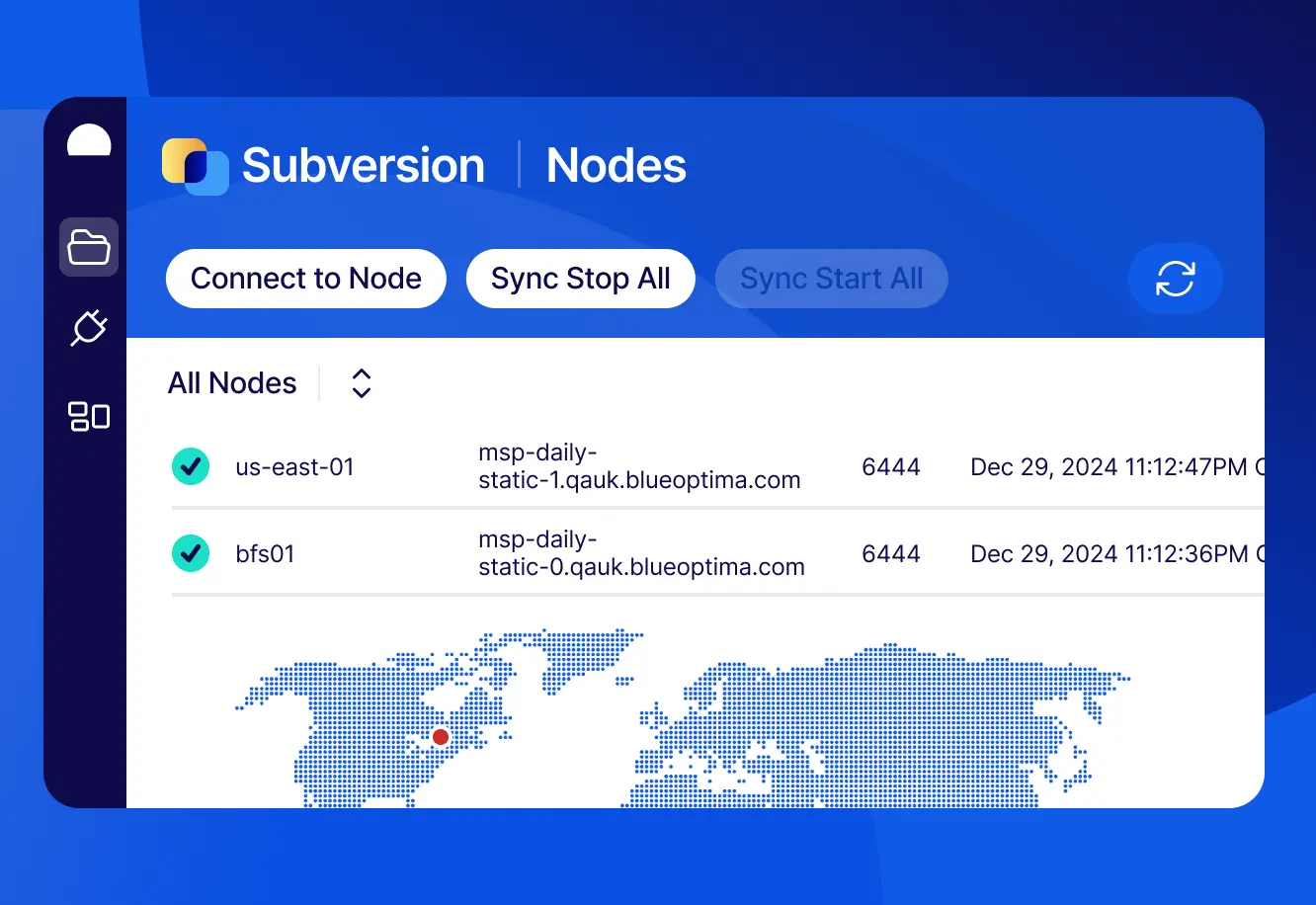 - Deploy Subversion Active MultiSite at locations geographically close to development teams to establish multiple active-active replicas of the repository across different locations.